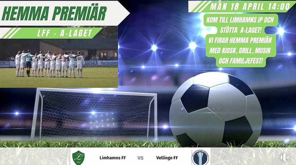Hemma premiär på Limhamns IP måndag kl: 14:00. Limhamns FFs A-lag
